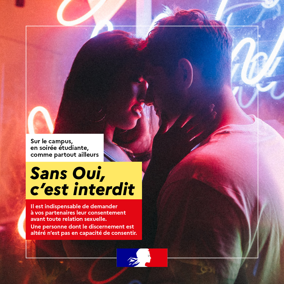 Sur le campus, en soirée étudiante, comme partout ailleurs, il est indispensable de demander à vos partenaires leur consentement avant toute relation sexuelle.