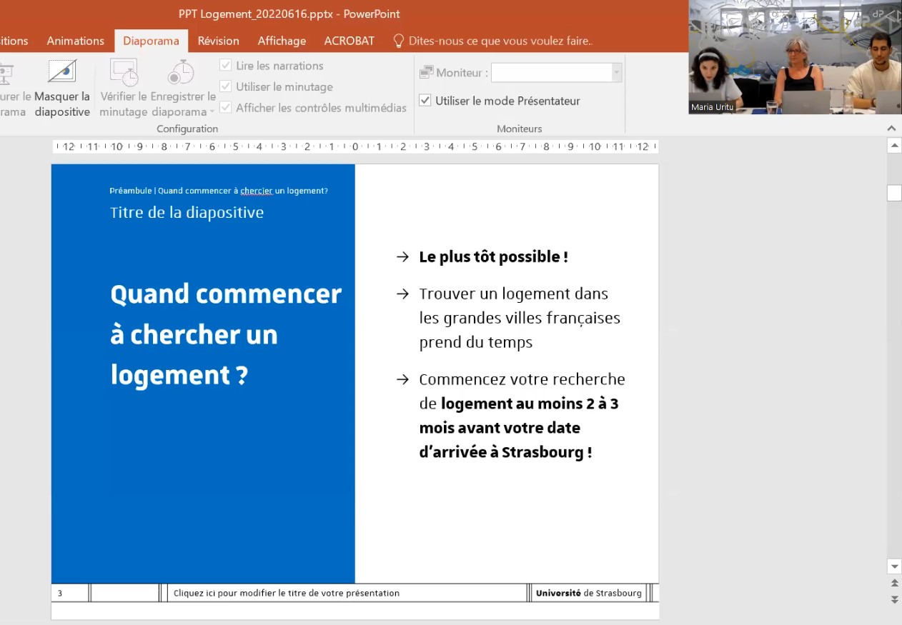 Dans le cadre de l'amélioration de l'accueil des étudiants internationaux, le Pôle accueil, accompagnement et promotion à l'international de la Direction des relations internationales a réalisé jeudi 16 juin son premier rendez-vous Zoom sur la thématique du logement pour les étudiants internationaux.