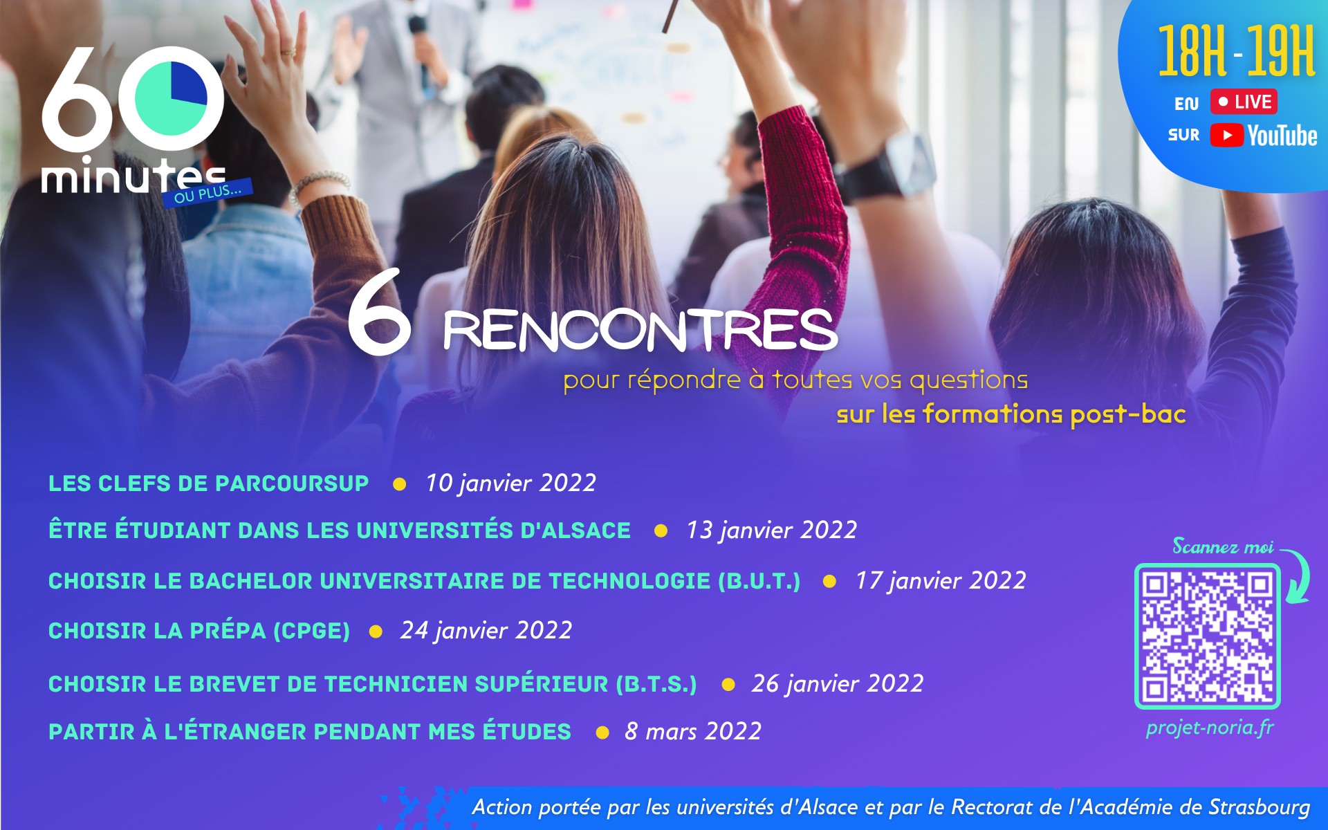 À partir de janvier 2022, 6 émissions en direct sont proposées par le projet Noria, à destination des parents d’élèves et de leurs enfants, pour répondre à toutes les questions sur les formations post-bac.