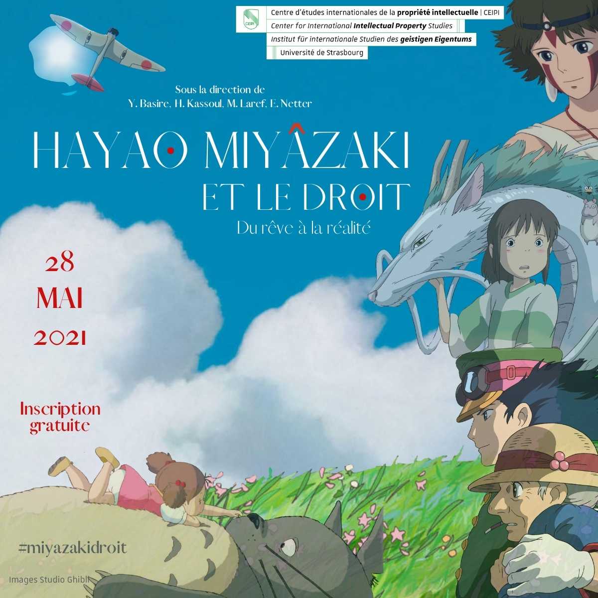Pour marquer la fin des cours pour nos Masters 2, le Centre d’études internationales de la propriété intellectuelle (CEIPI) a le plaisir de vous convier à la conférence « Hayao Miyazaki et le droit : du rêve à la réalité », qui se tiendra en ligne le vendredi 28 mai de 15h30 à 19h (CEST).
