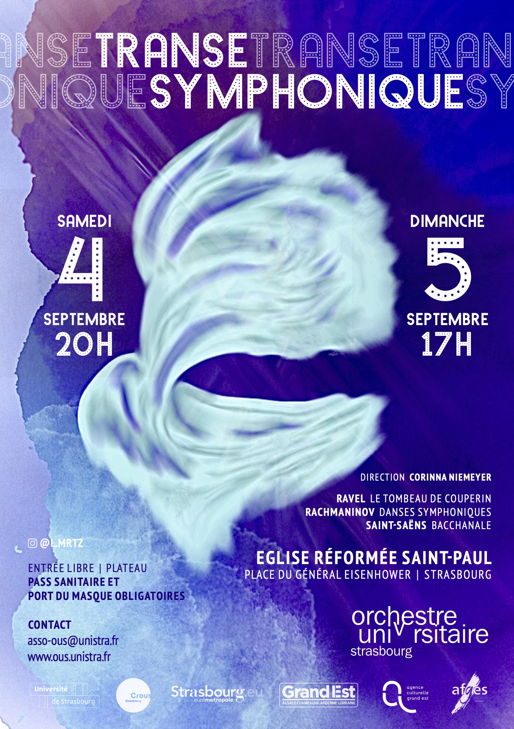 A l'occasion de ses concerts de rentrée, l'Orchestre Universitaire de Strasbourg est heureux de vous retrouver pour un programme symphonique et dansant sous la direction de Corinna Niemeyer le samedi 4 septembre à 17h à l'église réformée Saint-Paul.