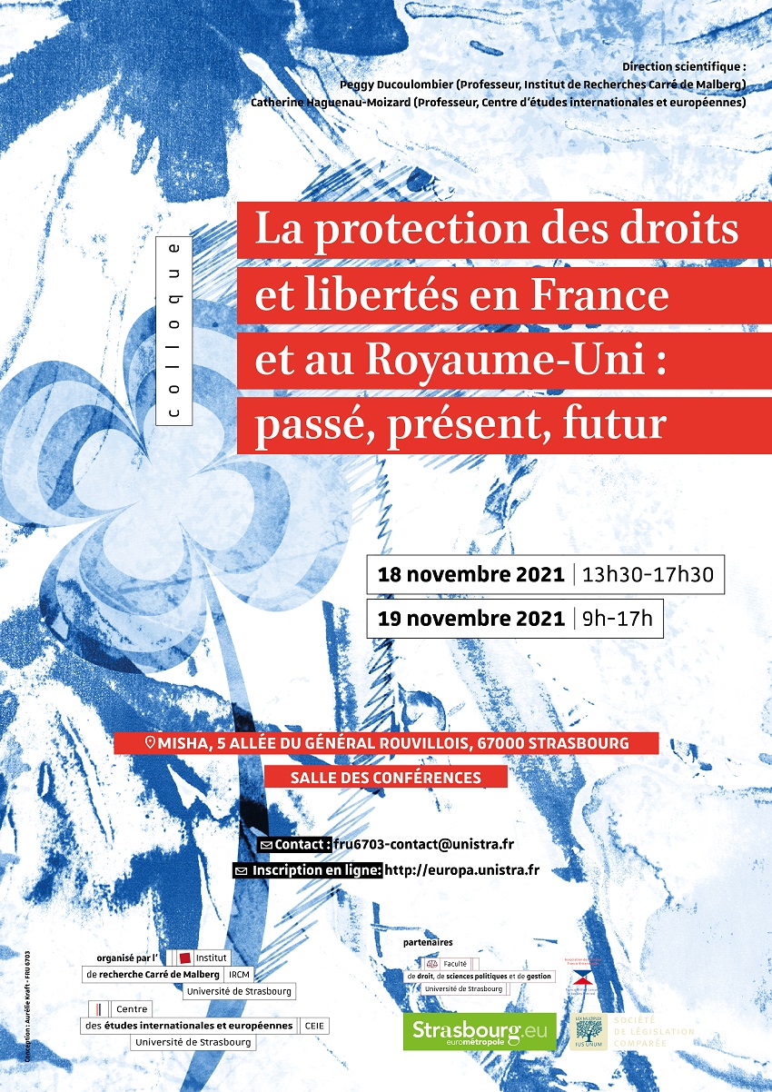 Un colloque intitulé « La protection des droits et libertés en France et au Royaume-Uni : passé, présent, futur » aura lieu le jeudi 18 novembre à 13h30 à la Maison interuniversitaire des sciences de l'Homme - Alsace.