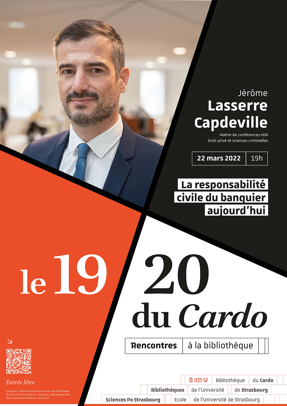 Une rencontre et un échange avec un auteur dans la mezzanine de la bibliothèque du Cardo - Sciences Po Strasbourg aura lieu le mardi 22 mars 2022 à 19h à la bibliothèque du Cardo, pour une rencontre et un échange avec Monsieur Jérôme Lasserre-Capdeville à l'occasion de la sortie de son livre "La responsabilité civile du banquier aujourd'hui".