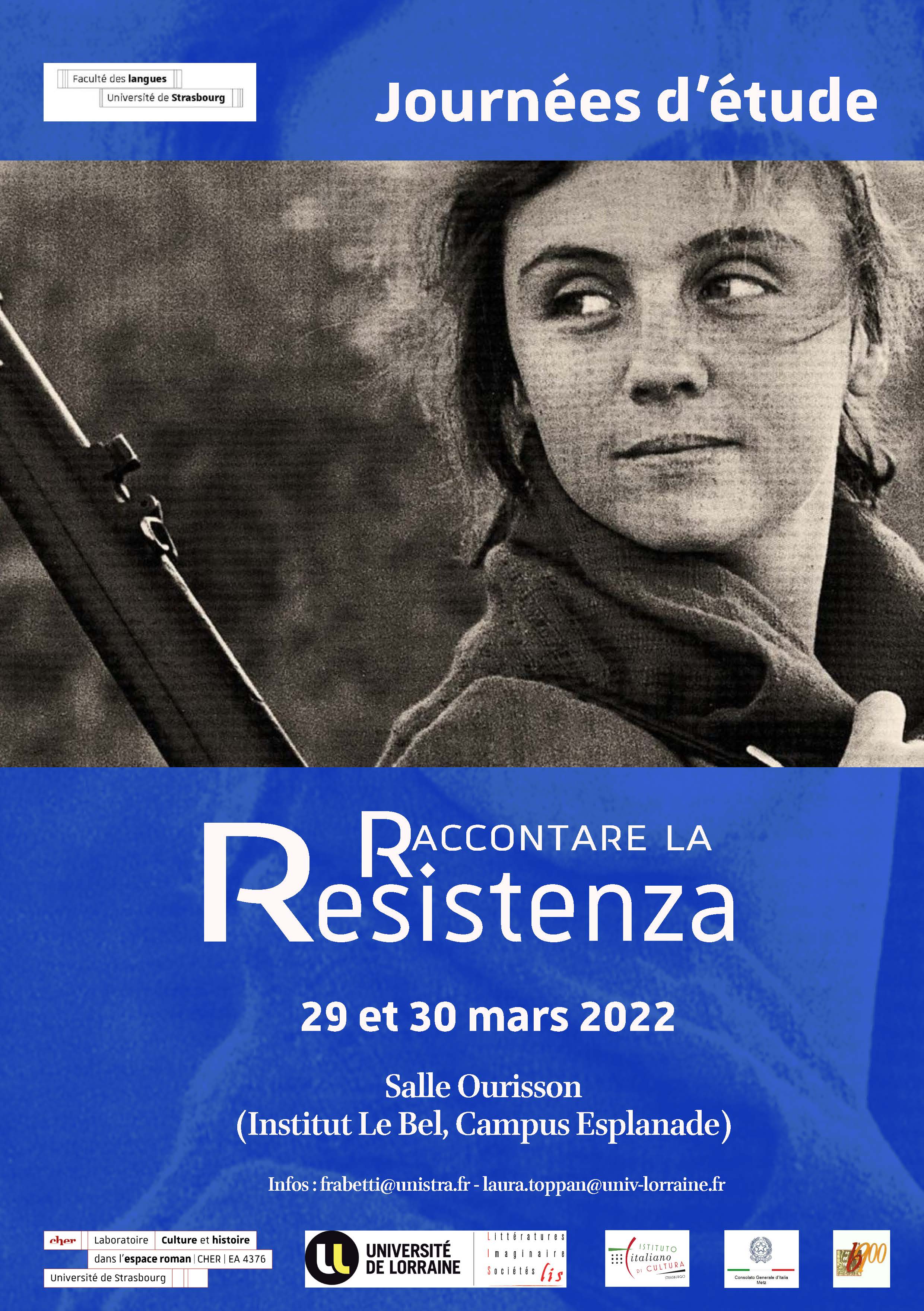 Une journée d'études intitulée « Raccontare la Resistenza » aura lieu les mardi 29 et mercredi 30 mars à 13h à L'Institut Le Bel sur le campus de l'Esplanade.