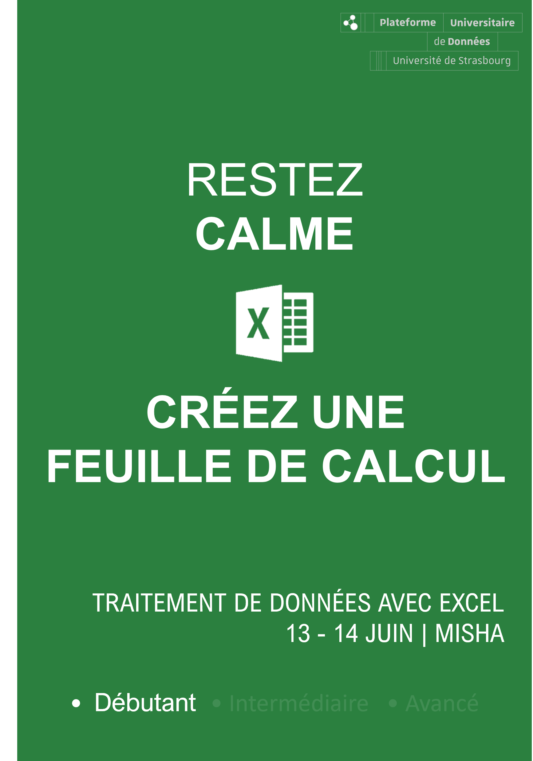 La Plateforme Universitaire de Données Strasbourg (PUD-S) propose 2 jours de formation consacrés au traitement de données avec Excel.