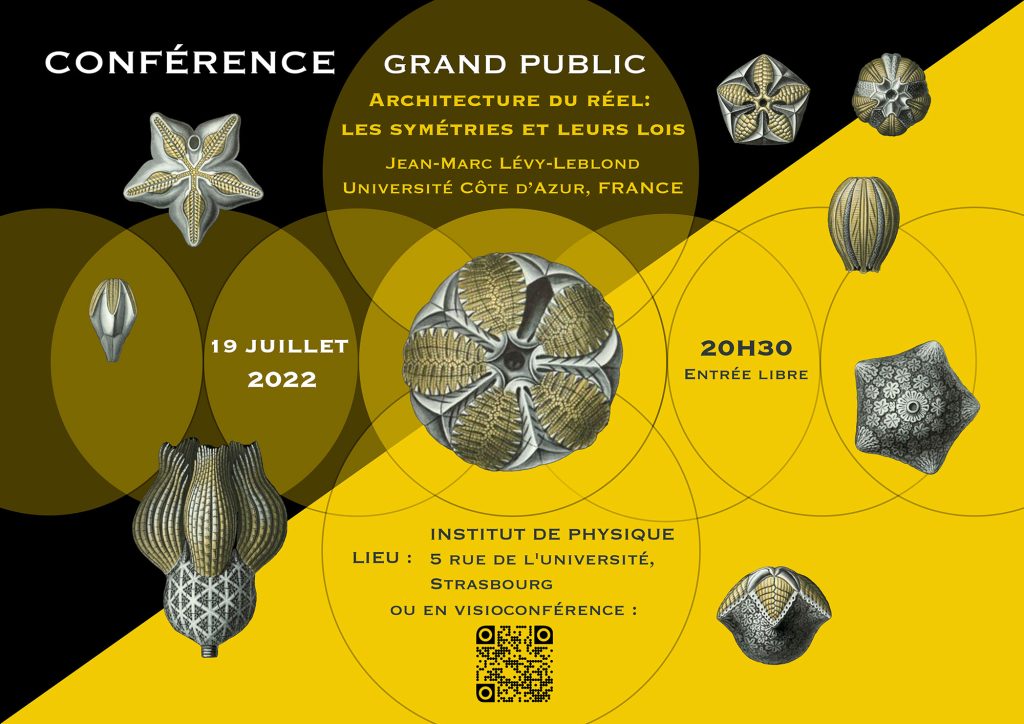 Une conférence grand public intitulée « Architecture du réel : les symétries et leurs lois » sur l’évolution de la théorie des groupes et ses applications en sciences aura lieu le mardi 19 juillet à 20h30 à l’amphithéâtre Fresnel à l’Institut de physique.