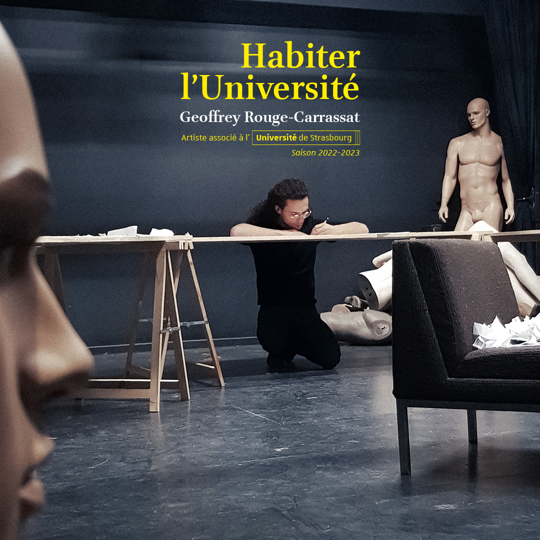 Pour les deux prochaines saisons, de septembre 2022 à juin 2024, l’Université de Strasbourg s’associe à l’auteur, metteur en scène et acteur Geoffrey Rouge-Carrassat, en lui proposant d'« habiter l’université » pour replacer le geste artistique au cœur de l'action culturelle universitaire.