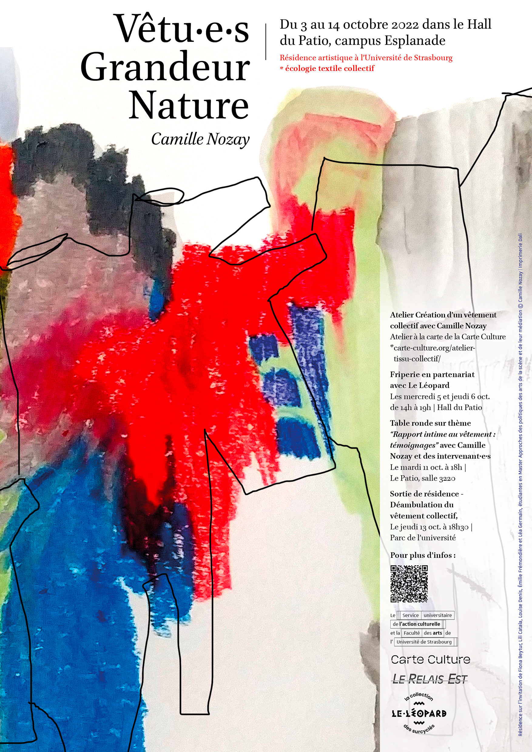 « Vêtu.e.s Grandeur Nature » est une résidence d'artiste à l'université initiée par Fiona Beytur, Lili Catala, Louise Denis, Emilie Frémondière et Léa Germain, étudiantes en Master APAM - Approches des politiques des arts de la scène et de leur médiation - Faculté des arts, en partenariat avec le Service universitaire de l’action culturelle, le dispositif Carte culture et la friperie Le Léopard.