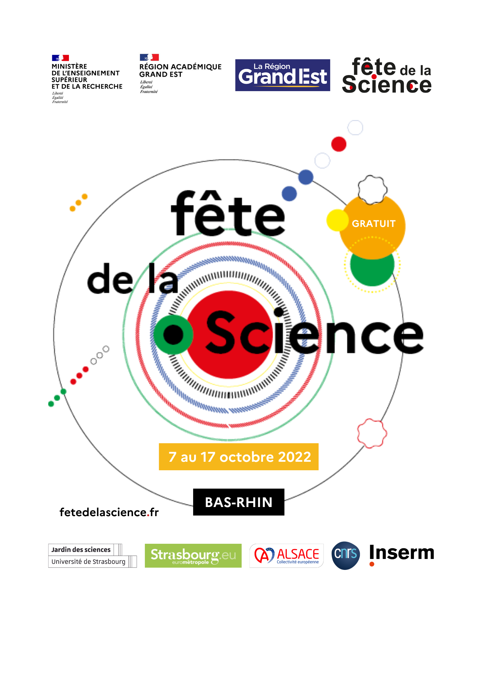 La Fête de la science, coordonnée par le Jardin des sciences à l'échelle du Bas-Rhin, aura lieu du 7 au 17 octobre 2022.