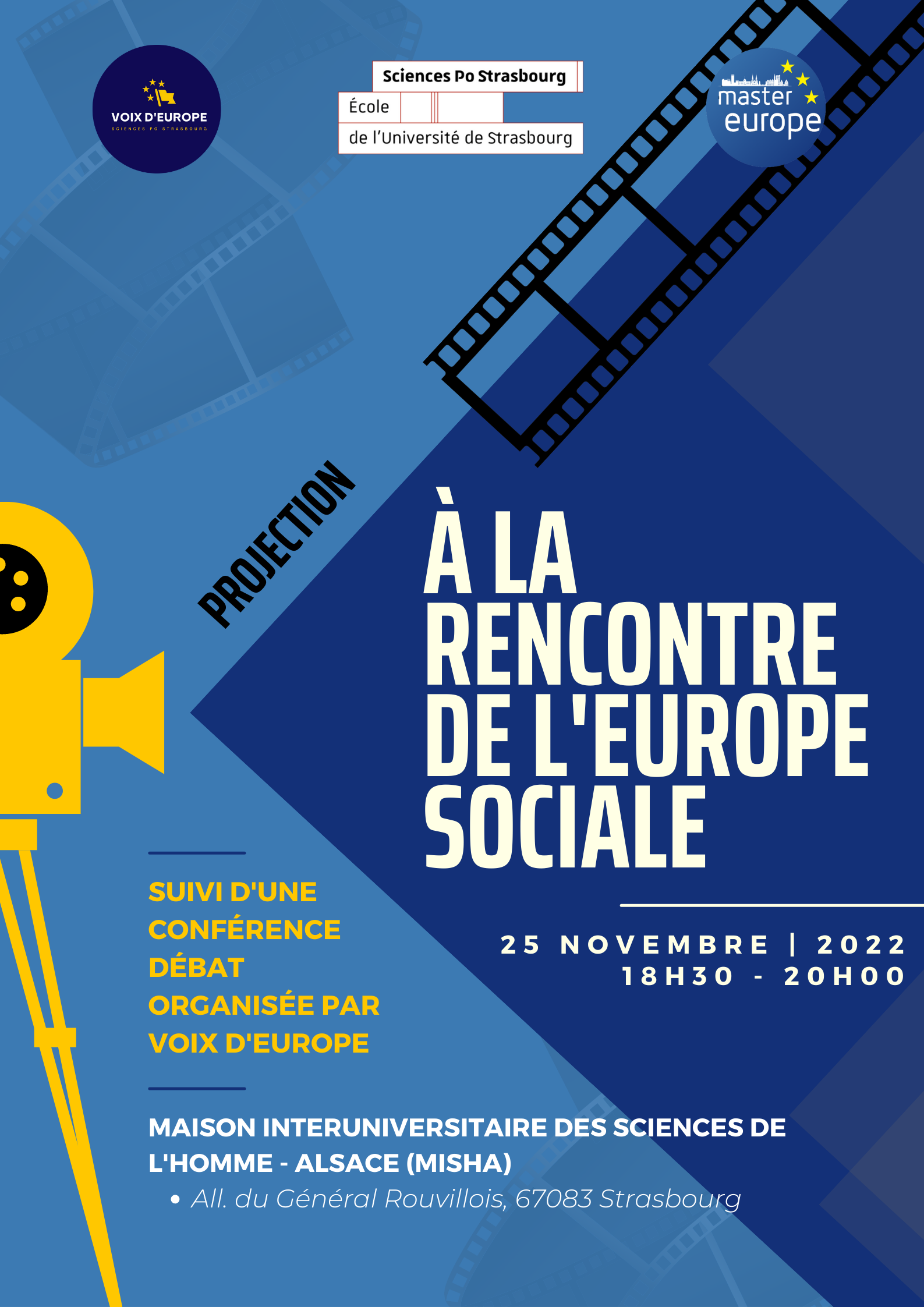Projection suivie d'une conférence débat intitulées « À la rencontre de l'Europe sociale » vendredi 25 novembre à 18h30 à la Maison Interuniversitaire des Sciences de l'Homme (MISHA).