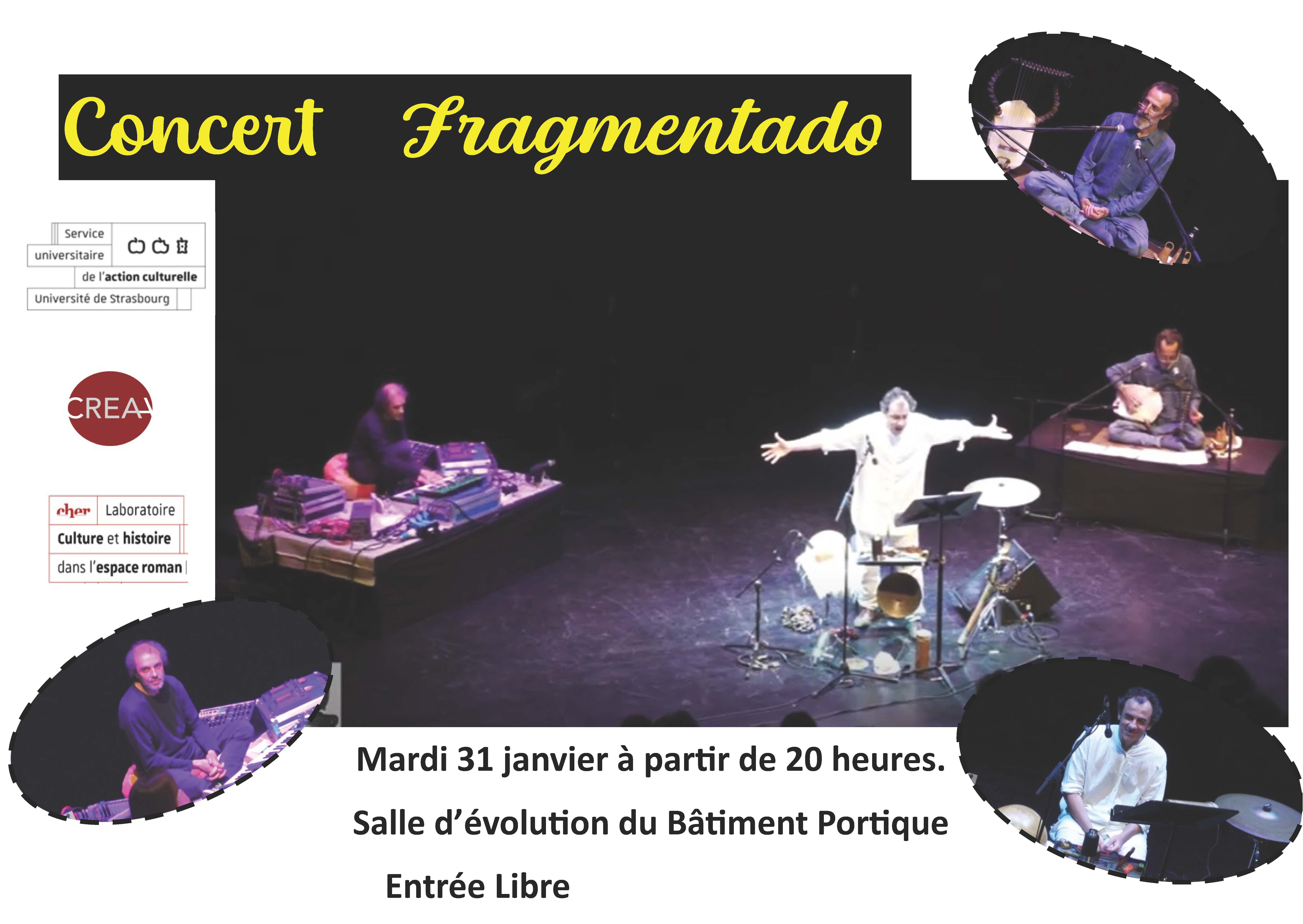 Dans le cadre du colloque « De l'archaïque au numérique » 30-31 janvier 2023) est organisé le concert « Fragmenté » le mardi 31 janvier 2023 à 20h00 en salle d'évolution au Portique.