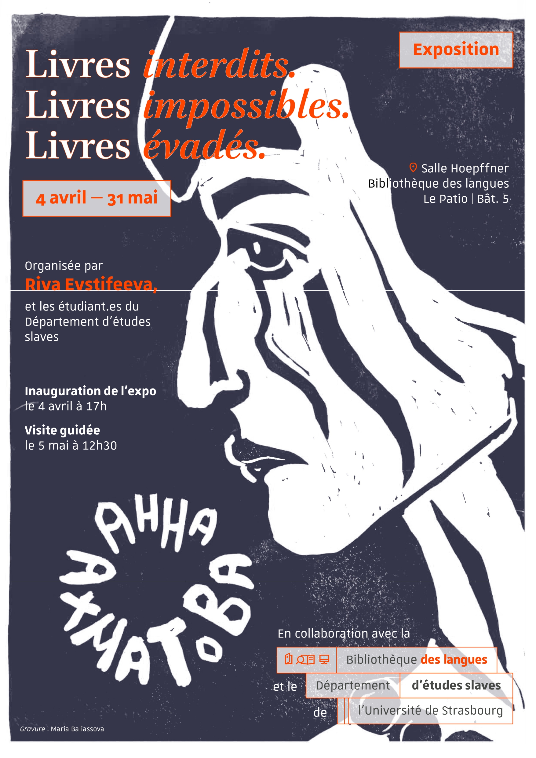 l'exposition qui raconte les trajectoires de livres, « interdits », « impossibles » ou encore « évadés » (russes mais pas uniquement) qui ont pu voyager à travers les frontières à l’époque où le Rideau de Fer divisait l’Europe en deux aura lieu du mardi 4 avril au mercredi 31 mai au Patio sur le campus de l'Esplanade.