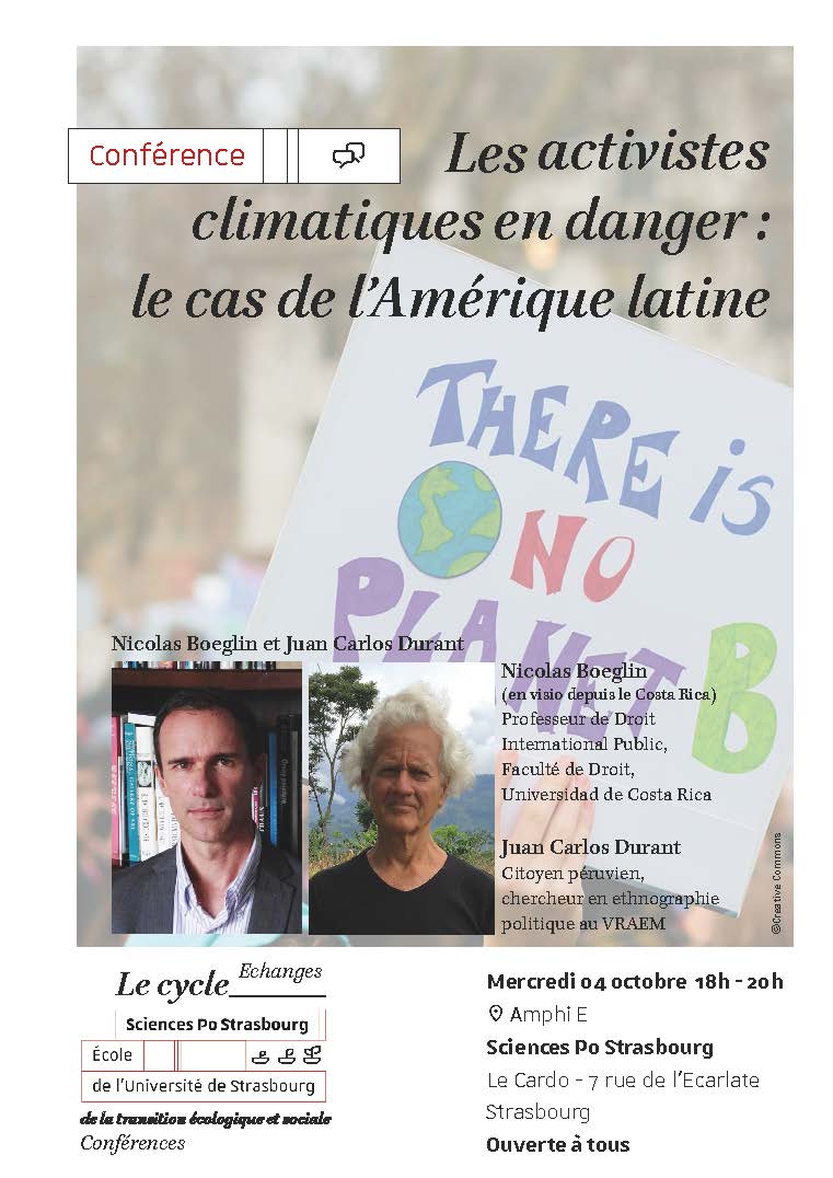 Dans le cadre du cycle de la transition écologique et sociale, une Conférence intitulé « Les activistes climatiques en danger : le cas de l'Amérique latine » aura lieu mercredi 4 octobre à 18h