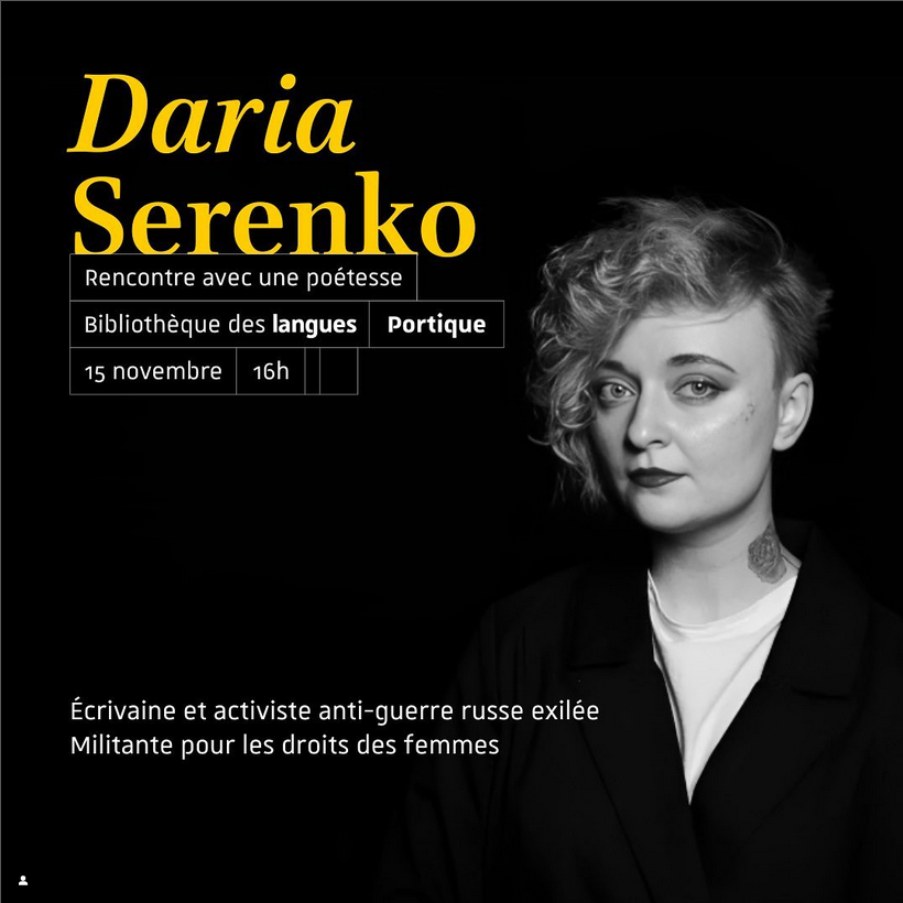 Daria Serenko est une poétesse russe, militante pour les droits des femmes. Co-fondatrice du mouvement Résistance féministe anti-guerre, elle est devenue l'un des visages de l'opposition au régime de Vladimir Poutine, un régime qu'elle juge symptomatique du patriarcat. En exil depuis l'automne dernier en Géorgie, elle est de passage en France pour une série de conférences.