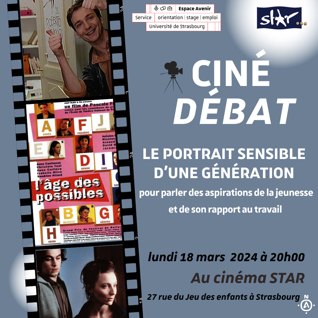 Espace Avenir propose sa troisième séance ciné-débat d'autour du film « L’âge des possibles », réalisé par Pascale Ferran et projeté au cinéma STAR.