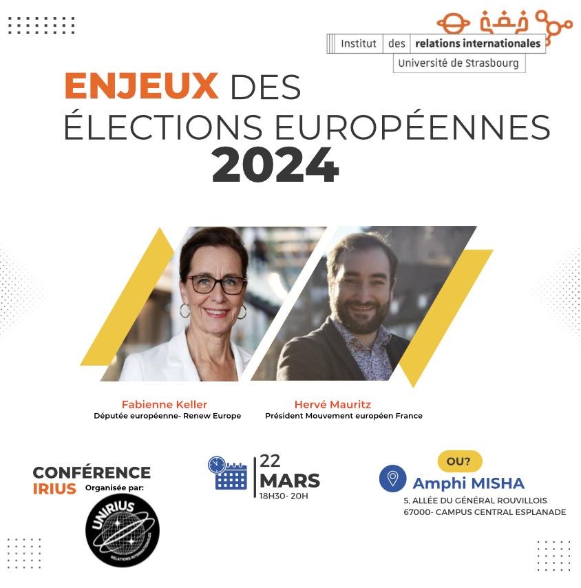 Une conférence intitulée « Les enjeux des élections européennes 2024 » aura lieu vendredi 22 mars à 18h30 à la Maison interuniversitaire des sciences de l'homme - Alsace (Misha).