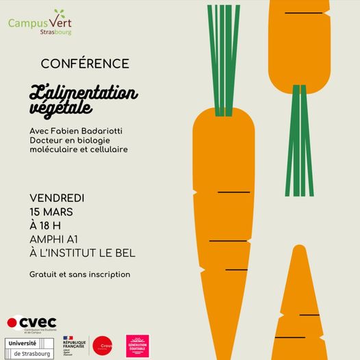 Une conférence intitulée « Végétalisation de l'alimentation » aura lieu vendredi 15 mars à 18h à l'Institut Le Bel sur le campus de l'Esplanade.