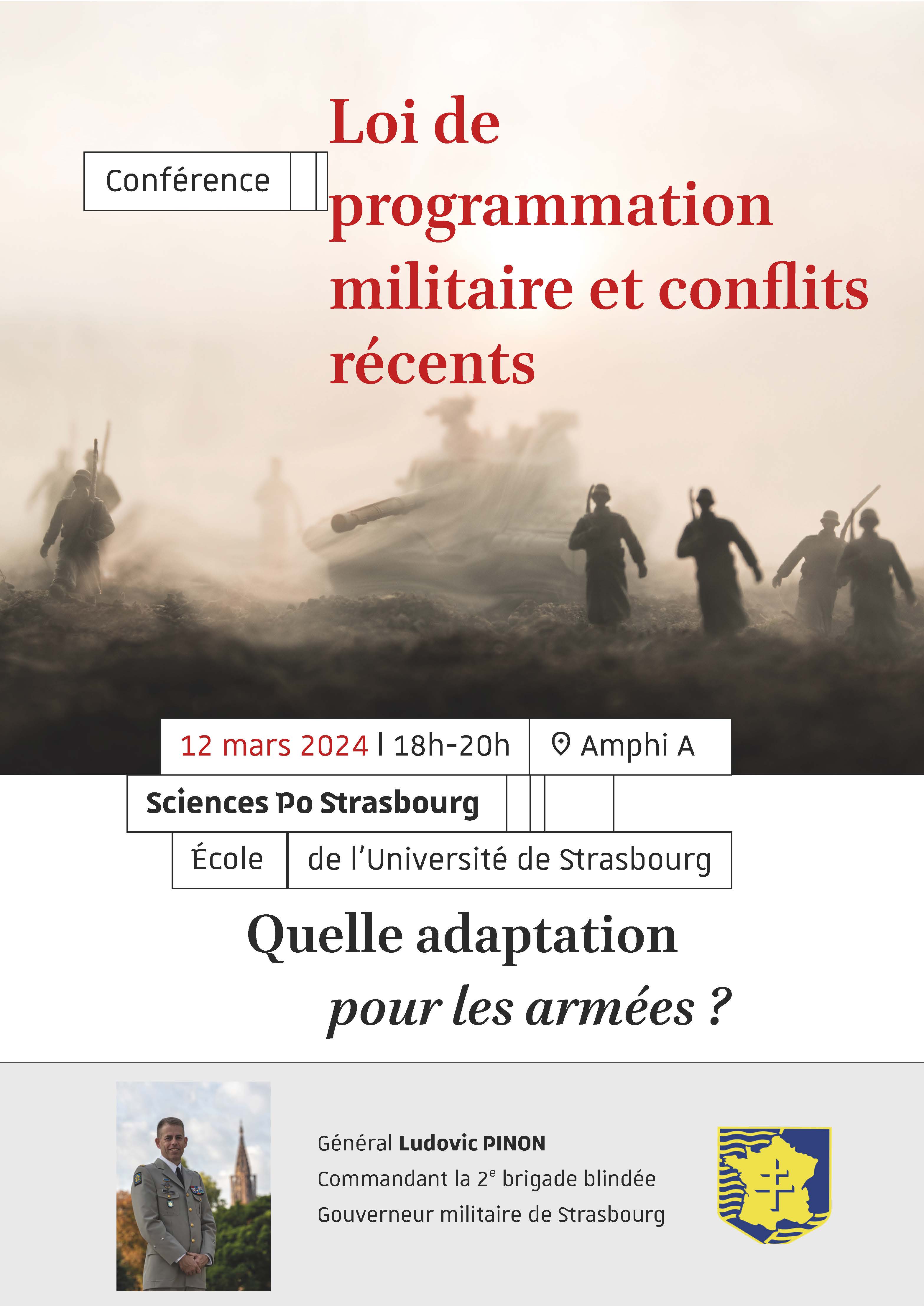 Une conférence intitulée « Loi de programmation militaire et conflits récents. Quelle adaptation pour les armées ? » aura lieu mardi 12 mars à 18h au Cardo sur le site de l'ancien hôpital civil de Strasbourg.