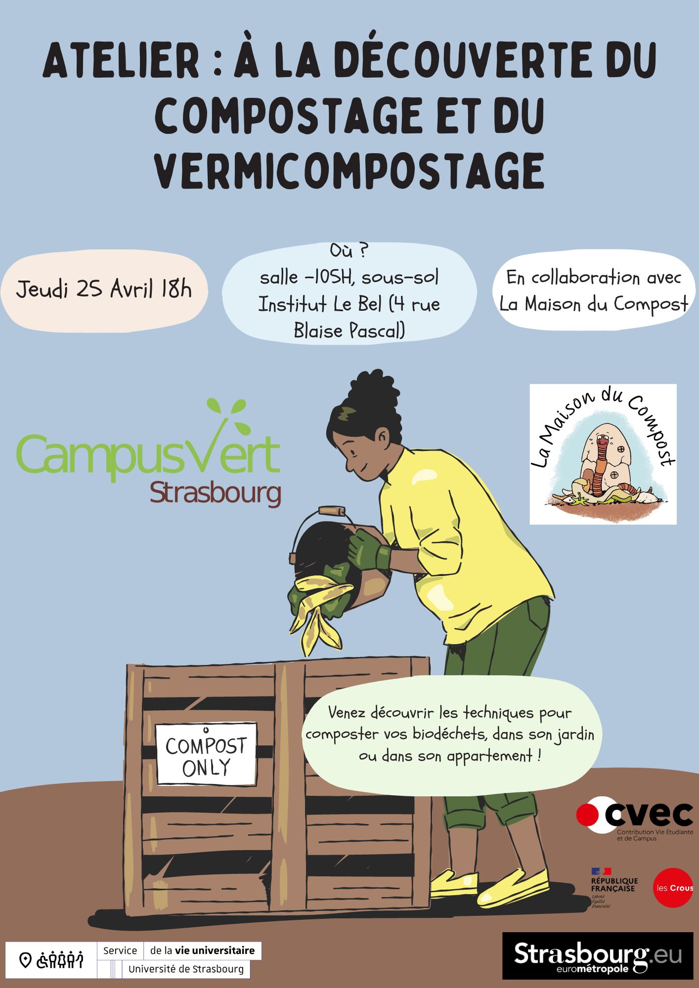 Cet atelier est proposé par Campus Vert et La Maison du Compost dans le cadre du Printemps de la Transition écologique organisée sur le campus pour les étudiant·es et personnel.