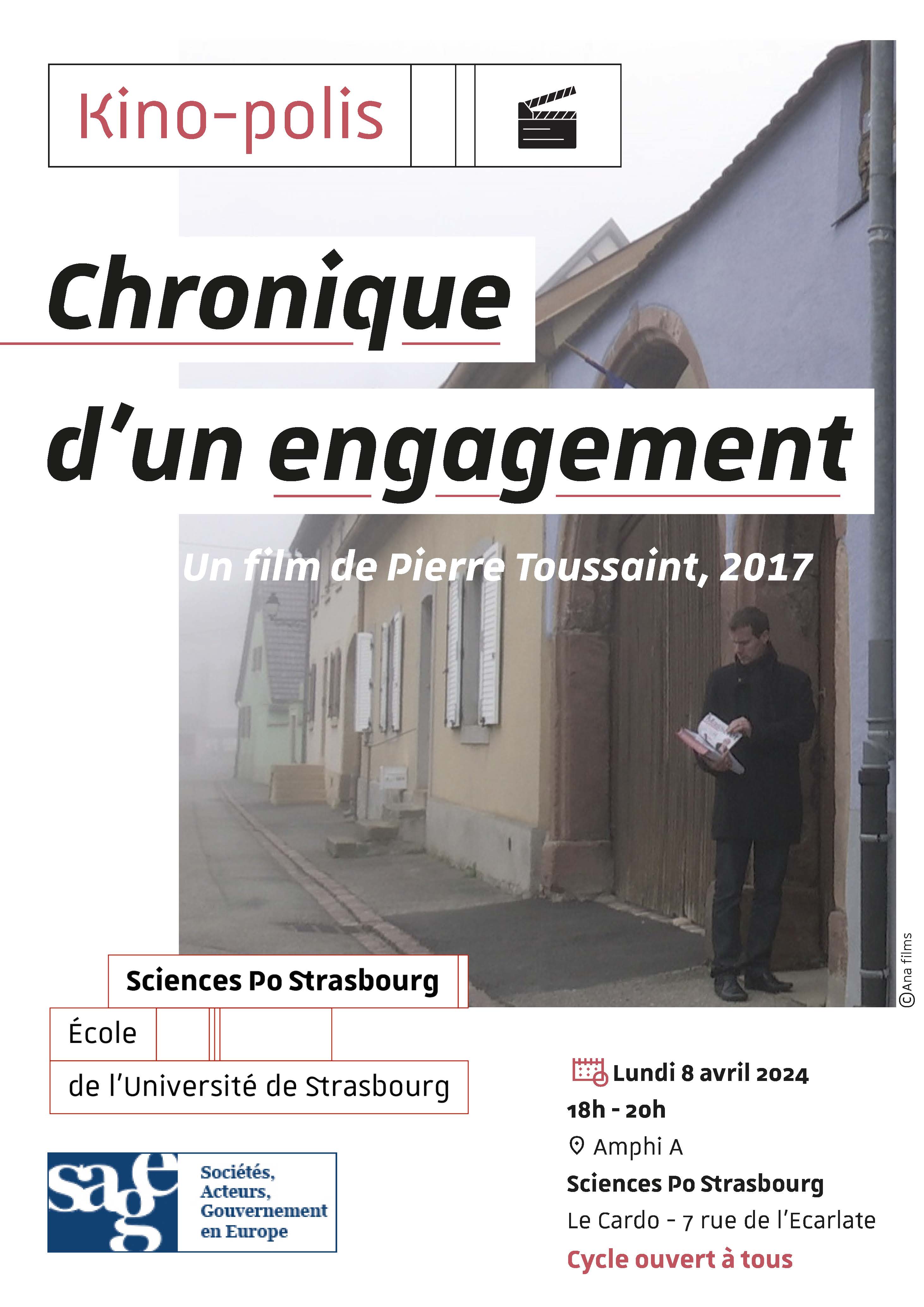 Sciences Po Strasbourg et le laboratoire SAGE (CNRS UMR 7363) ont lancé un nouveau cycle de projections-débats : Kino-polis intitulés « Filmer les enjeux et rapports de force en politique » aura lieu lundi 8 avril à 18h au Cardo. 3 dates - 3 films pour débattre !