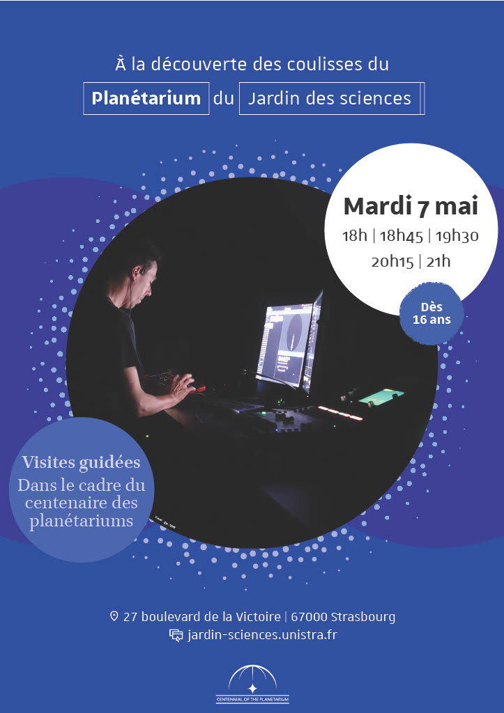 À l’occasion de la Journée Internationale des Planétariums et dans le cadre du centenaire de ces derniers, l’équipe du Planétarium du Jardin des sciences propose une découverte privilégiée de ce lieu d’exception : son architecture inédite, la salle immersive côté coulisses, la régie et son matériel innovant, la face cachée du simulateur de voyage cosmique Digistar 7… Un moment de partage pour comprendre comment, lors des spectacles, les médiateurs scientifiques suscitent émerveillement et curiosité en immersion sous un dôme de 15 m de diamètre !