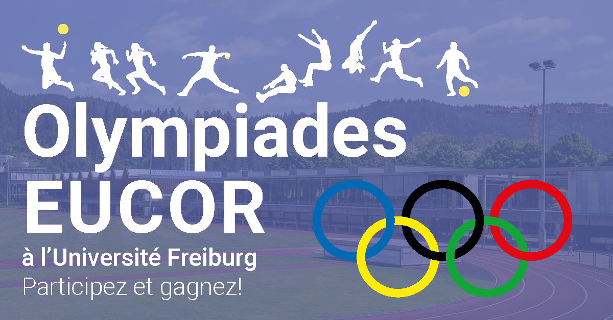 Qu’est-ce qu’une olympiade ? C’est un grand jeu en équipe où les participantes et participants enchaînent plusieurs épreuves sportives. Les olympiades Eucor regroupent 5 sports : saut en longueur, sport de lancer, course de relais, football en salle et balle au prisonnier. Les 60 participantes et participants seront répartis en plusieurs équipes mixtes. Les équipes seront ensuite classées selon leur nombre de victoire. Les trois meilleures remporteront des prix !