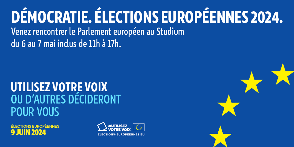 L’Unité de Liaison avec les Visiteurs et les Citoyens du Parlement européen sera présente au Studium les 6 et 7 mai prochains, de 11h à 17h, pour rencontrer les étudiants, à un mois des élections européennes du 9 juin 2024.