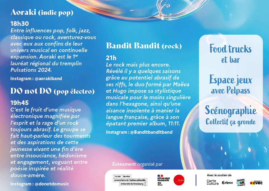 Suac et le Crous de Strasbourg, en partenariat avec Strasbourg Aime ses Étudiants, l'association Pelpass et avec le soutien du dispositif Carte Culture.