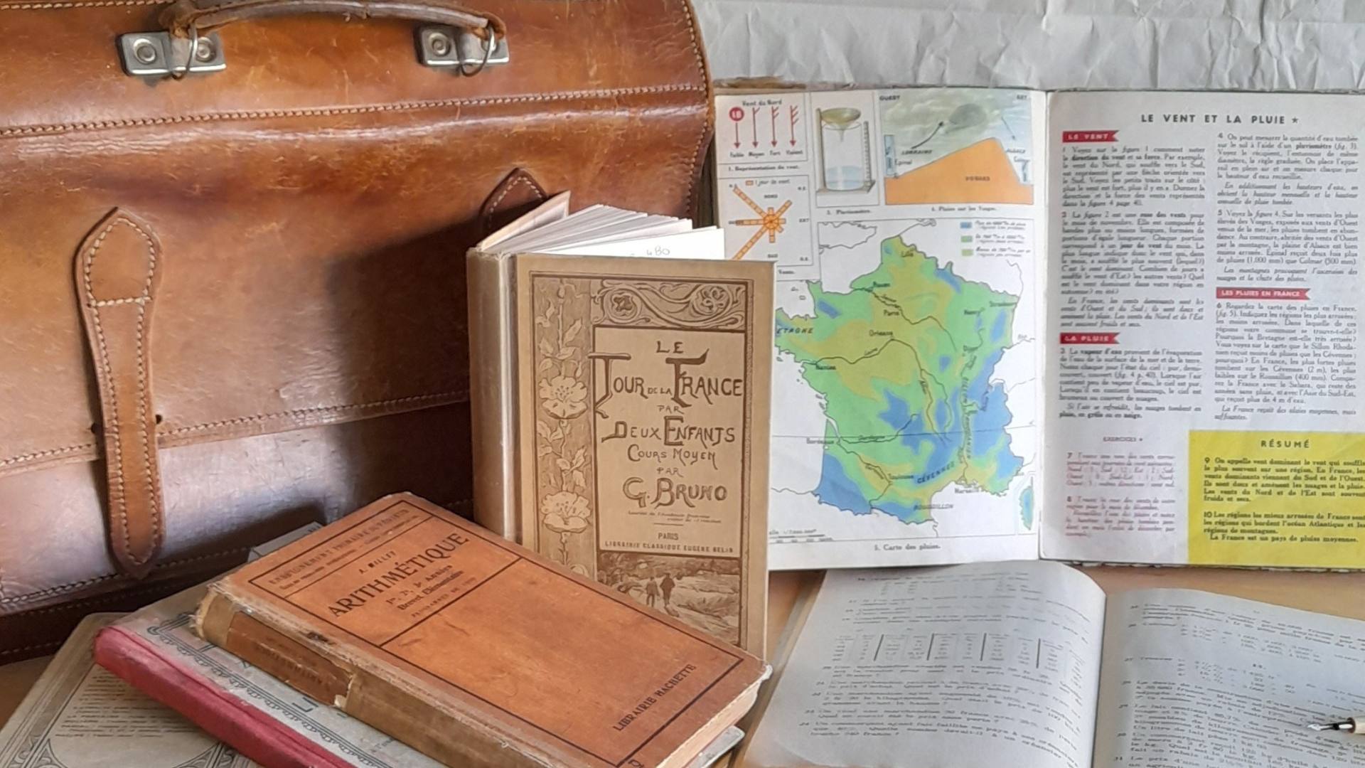 Historique du livre scolaire entre 1850 (Loi Falloux) et 1950avec des ouvrages des archives de Sélestat.