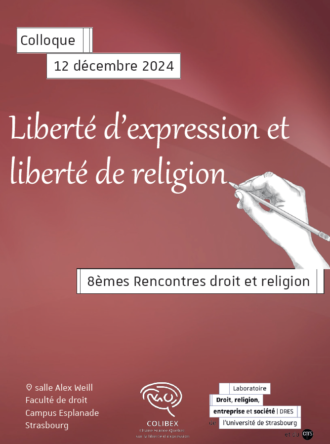 À l'occasion de la 8èmes rencontres Droit et Religion, un colloque intitulé « Liberté d'expression et liberté de religion » aura lieu jeudi 12 décembre à partir de 9h à la Faculté de droit sur le campus de l'Esplanade.