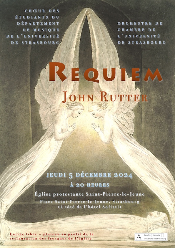 Le Chœur des étudiants du département de musique de l'université de Strasbourg et l'Orchestre de chambre de l'université de Strasbourg vous invitent au concert qu'ils donneront jeudi 5 décembre à 20 h en l'église protestante Saint-Pierre-le-Jeune, Strasbourg