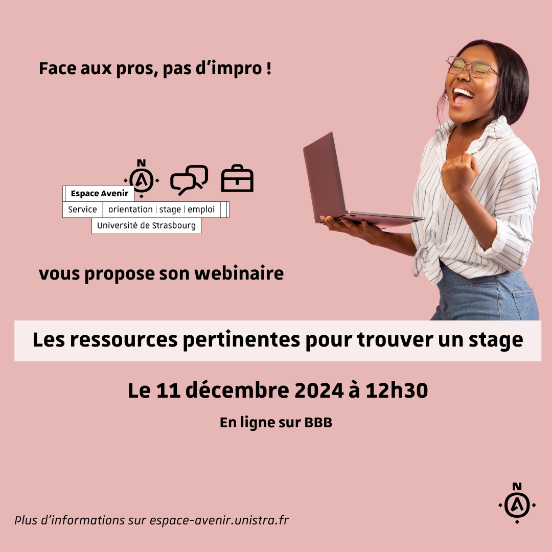 Un webinaire intitulé « Les ressources pertinentes pour trouver un stage » aura lieu mercredi 11 décembre à 12h30.