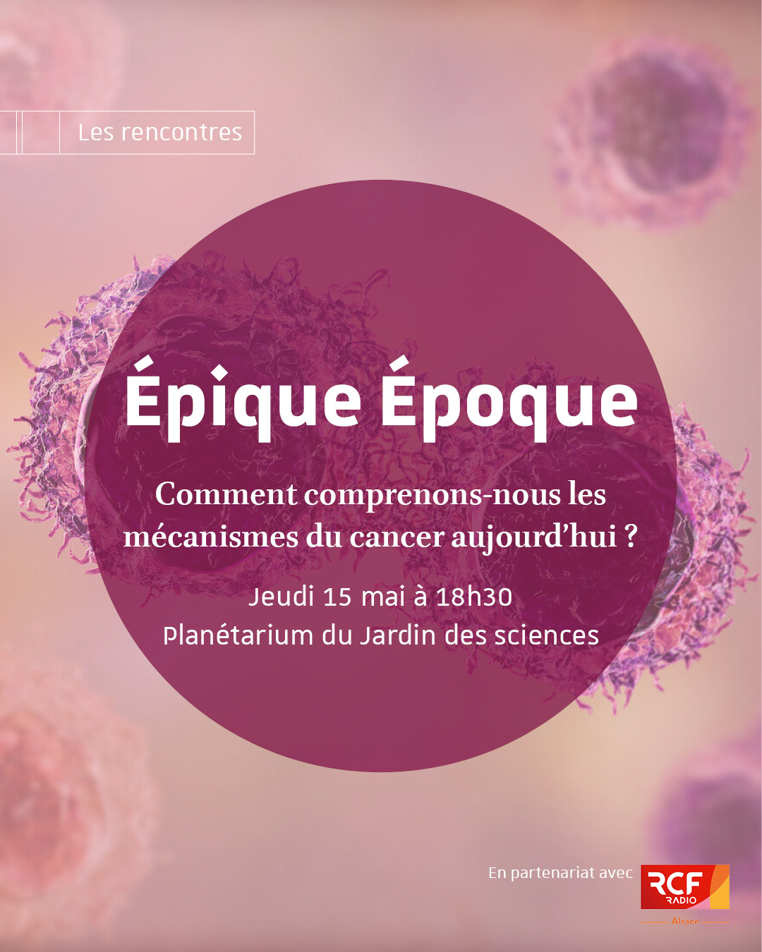 Dans le cadre d'Épique époque une conférence intitulée « Comment comprenons-nous les mécanismes du cancer aujourd’hui ? » aura lieu jeudi 15 mai à 18h30 au Planétarium.