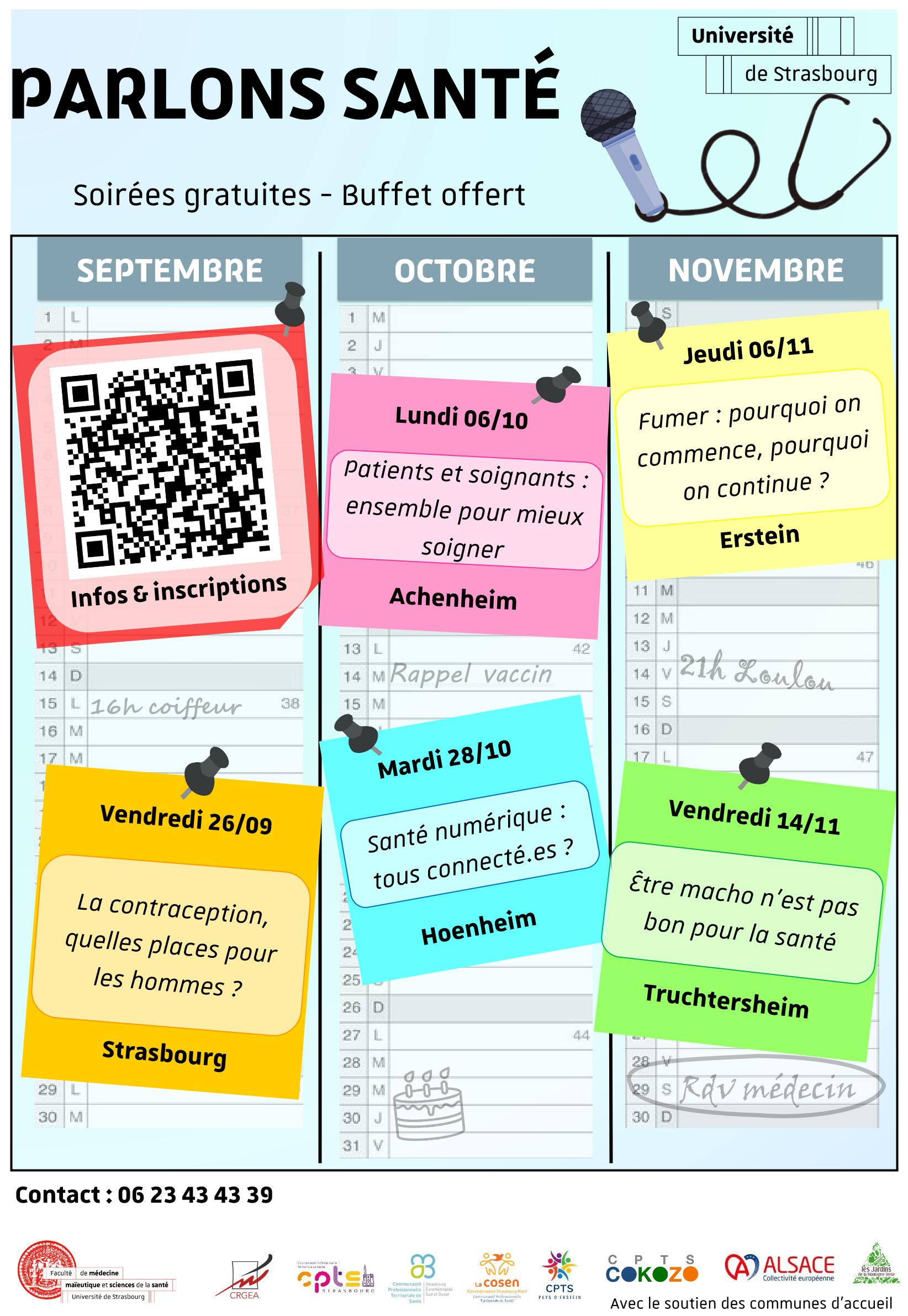 D’autres conférences Parlons Santé sont organisées les 06/10 (Achenheim), 28/10 (Hoenheim), 06/11 (Erstein) et 14/11 (Truchtersheim)